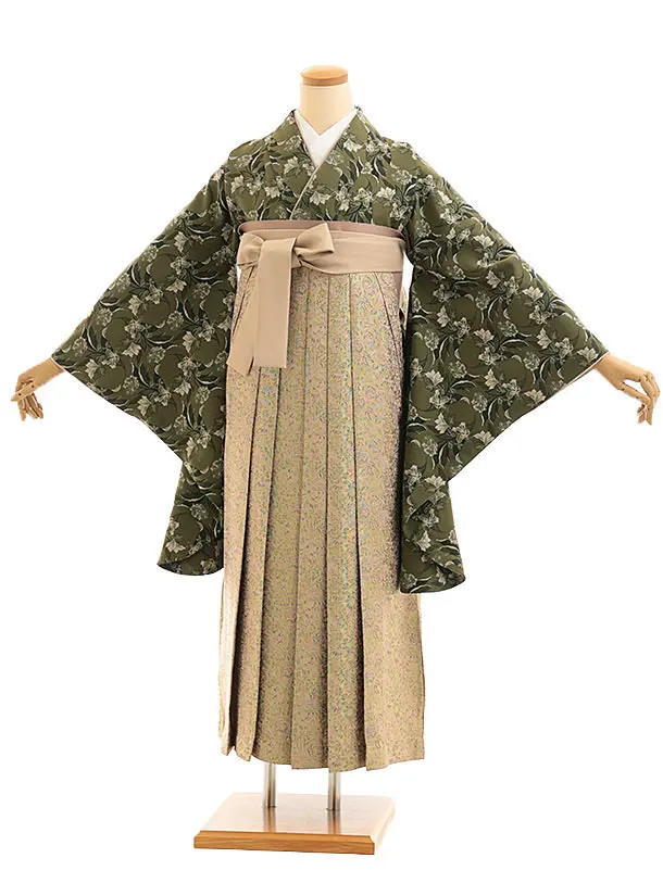 卒業式袴レンタル1722 グリーン洋花×メタルグリーンピンク花
