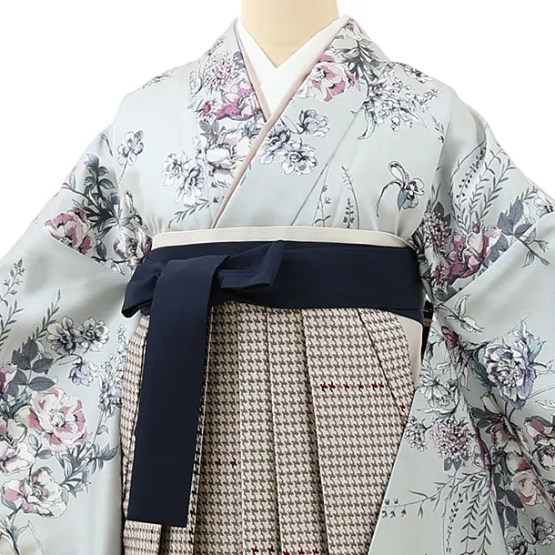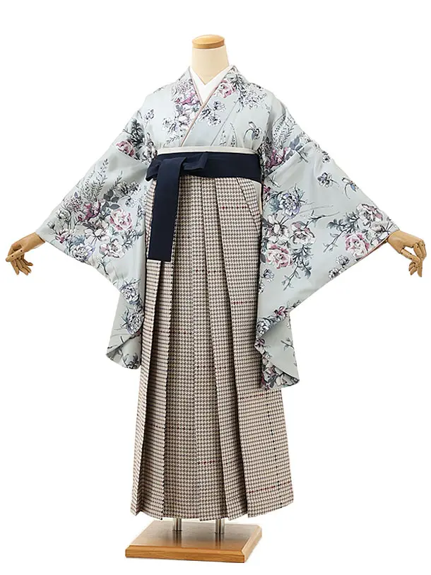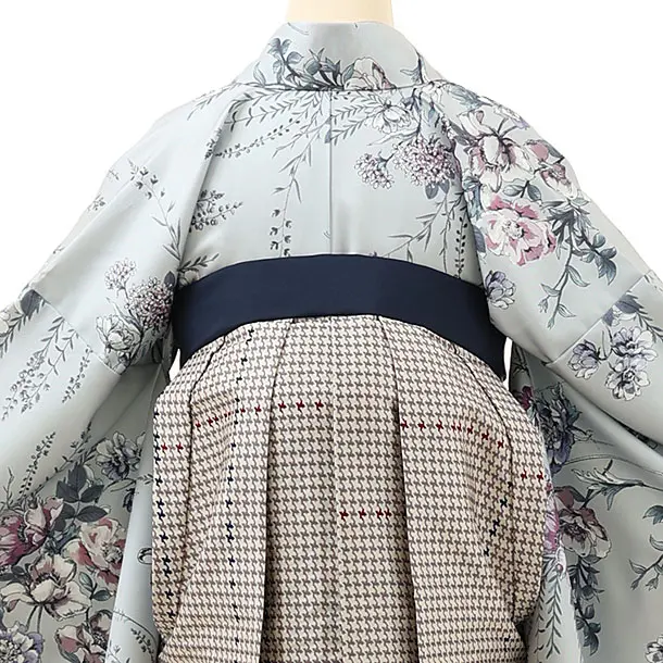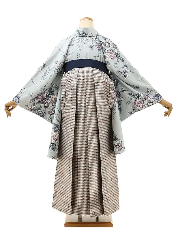 卒業式袴レンタル1726 グレイッシュブルーアネモネ×グレージュ千鳥