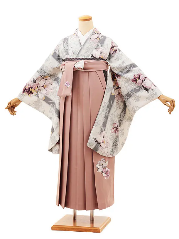 卒業式袴レンタル1736 SUGAR KEI 白グレー×ピンク