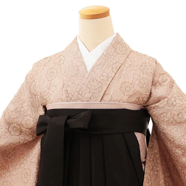 卒業式袴レンタル1743 ピンクベージュレース×チャコール