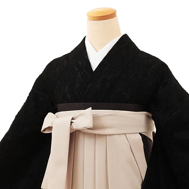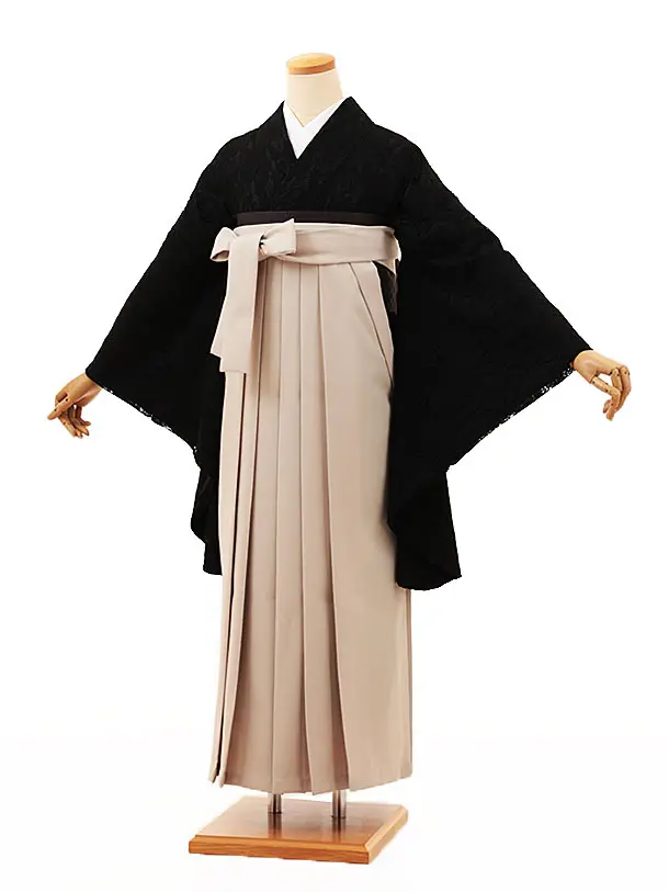 卒業式袴レンタル1746 ブラックレース×薄ベージュ