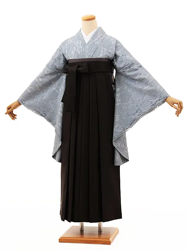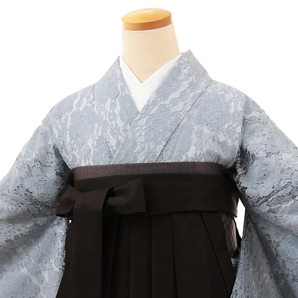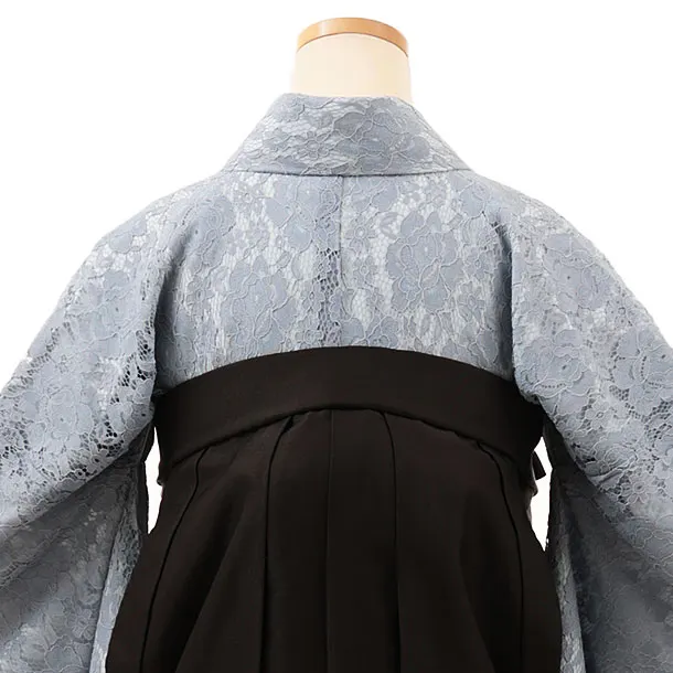 卒業式袴レンタル1753 ブルーグレーレース×チャコール
