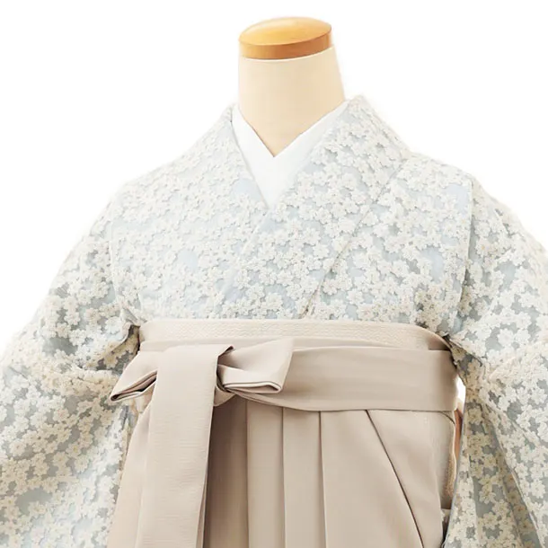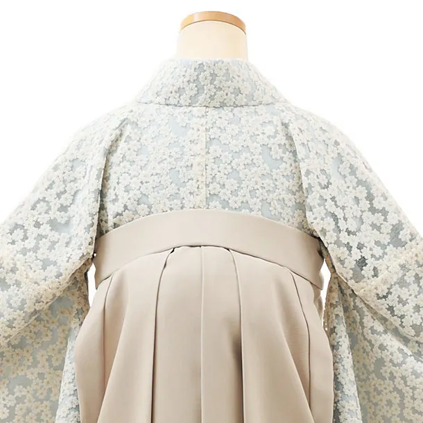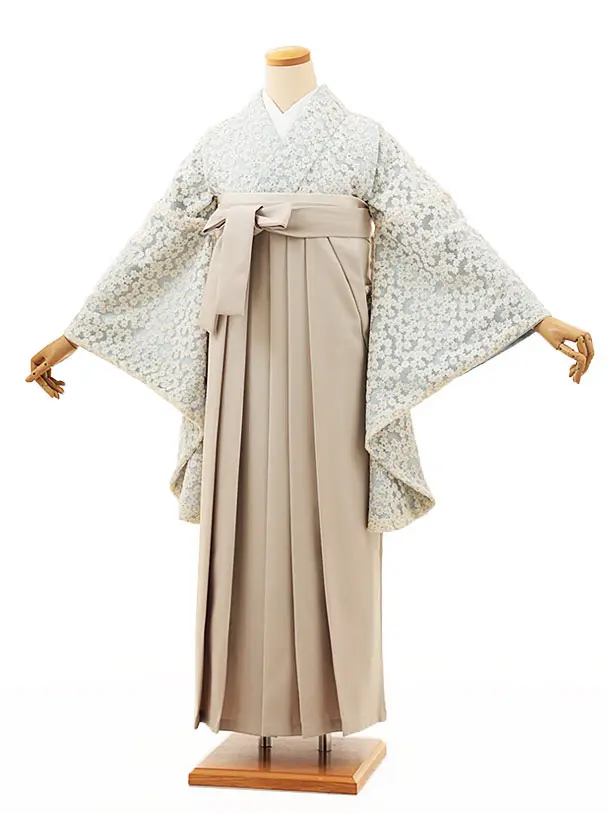 卒業式袴レンタル1755 ペールブルー小花レース×ベージュ