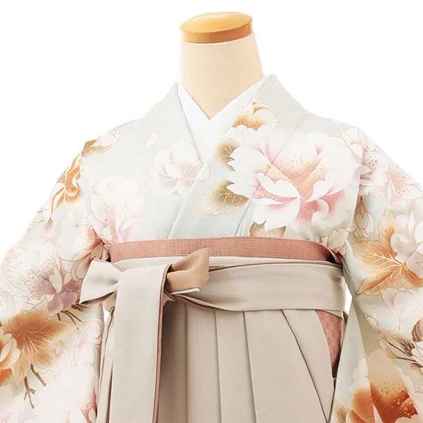 卒業式袴レンタル1764 ペールグリーン雪輪花×薄ベージュ