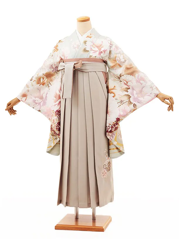 卒業式袴レンタル1765 ペールグリーン雪輪花×薄ベージュ