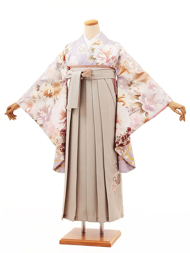 卒業式袴レンタル1766 パープル雪輪花×薄ベージュ