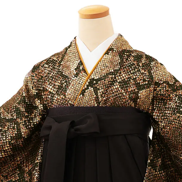 卒業式袴レンタル1771 茶パイソン柄×黒