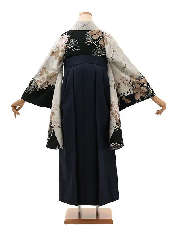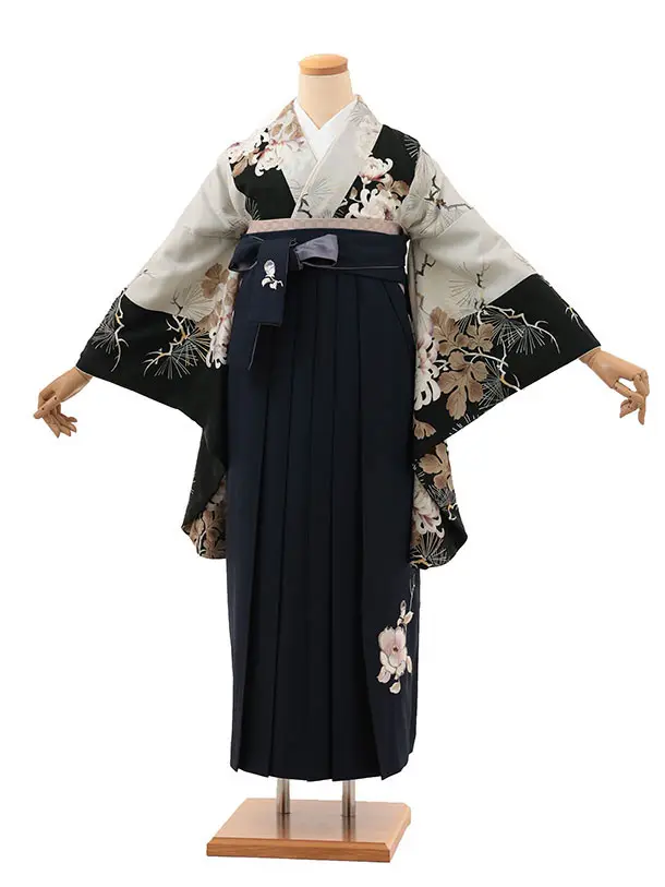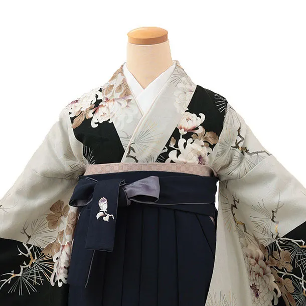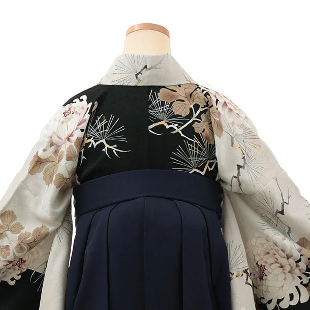 卒業式袴レンタル1781 そしてゆめ 昼夜菊松(黒)×椿刺繍(紺)