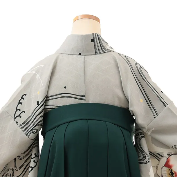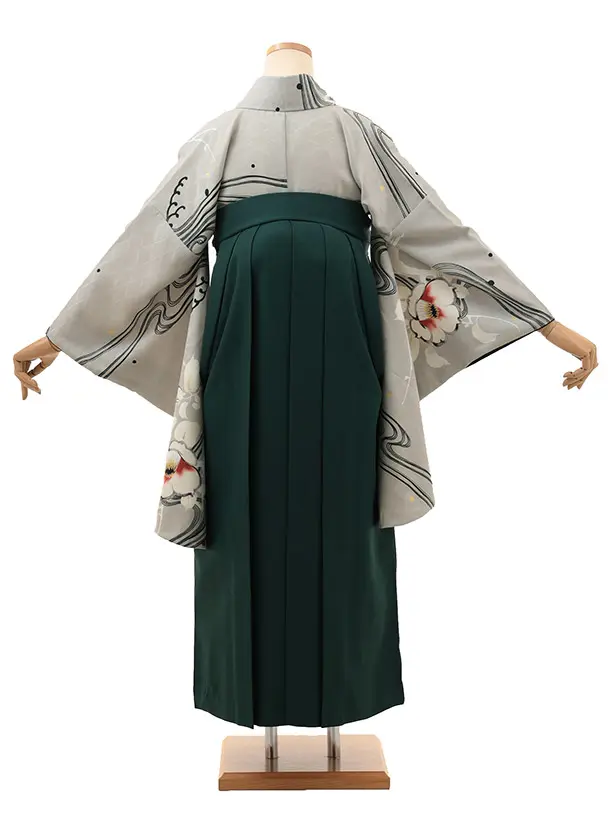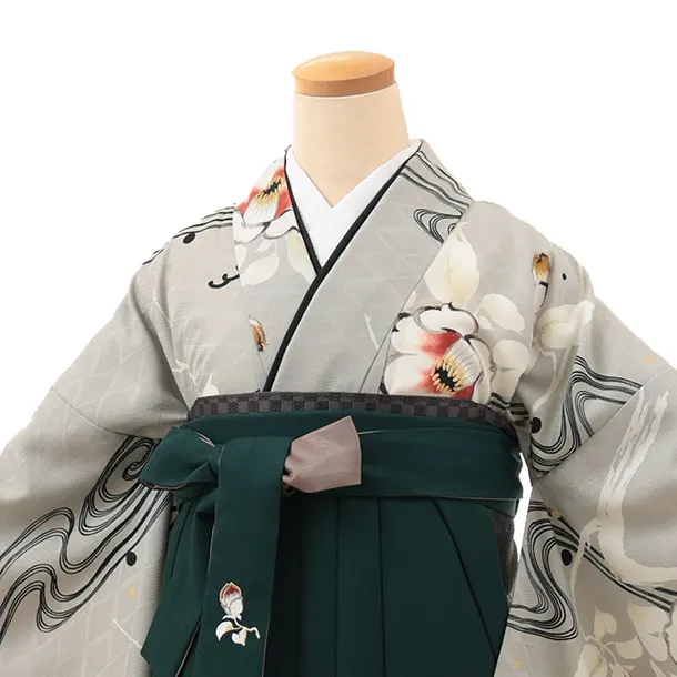 卒業式袴レンタル1786 そしてゆめ 流水椿(銀鼠)×椿刺繍(緑)