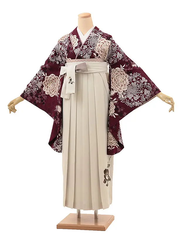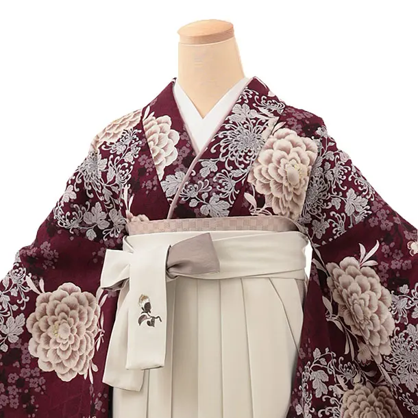 卒業式袴レンタル1787 そしてゆめ 東洋牡丹(葡萄色)×椿刺繍(白)