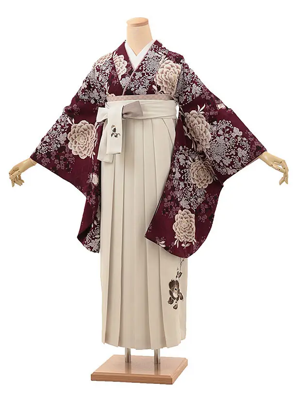 卒業式袴レンタル1788 そしてゆめ 東洋牡丹(葡萄色)×椿刺繍(白)