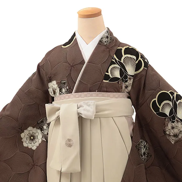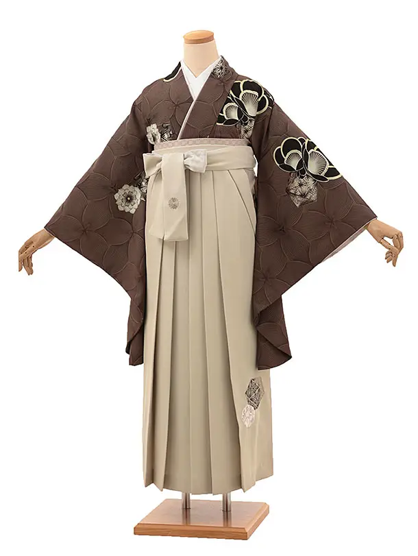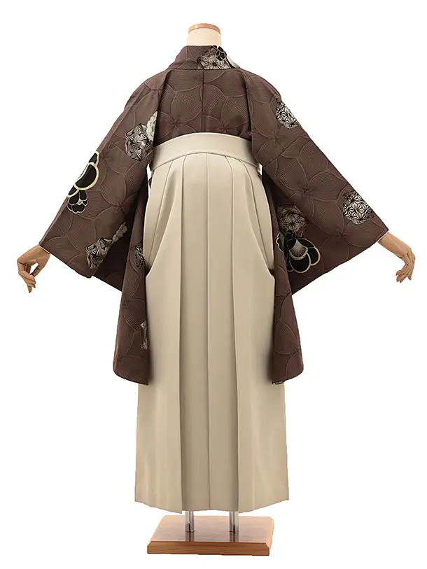 卒業式袴1792 JAPANSTYLE 西洋の梅(茶)×花丸刺繍(ベージュ)