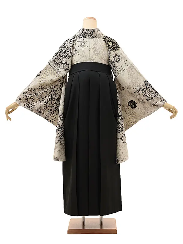 卒業式袴1796 JAPANSTYLE切子菊(クリーム)×切子と花丸刺繍(黒)