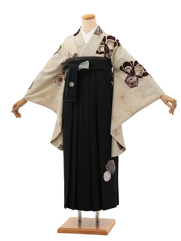 卒業式袴1801 JAPANSTYLE 西洋の梅(ベージュ)×花丸刺繍(黒)