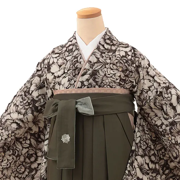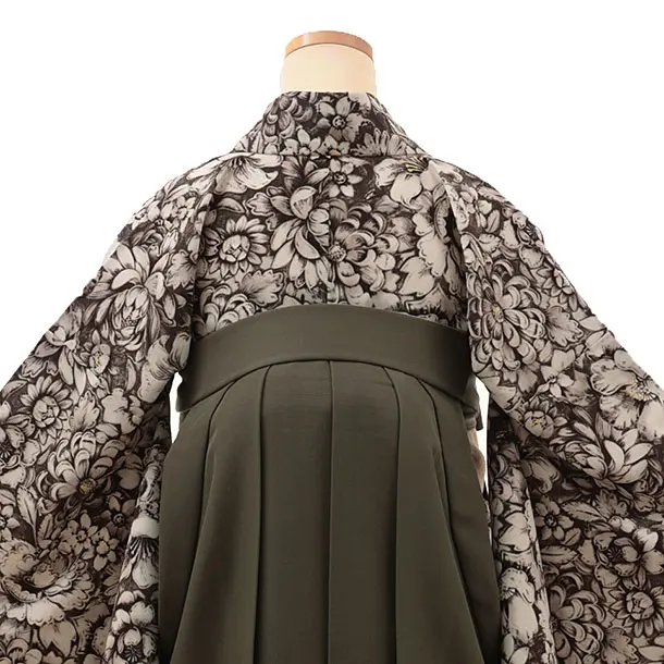 卒業式袴1806 JAPANSTYLE ヴィンテージ花(セピア)×緑