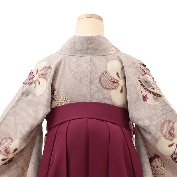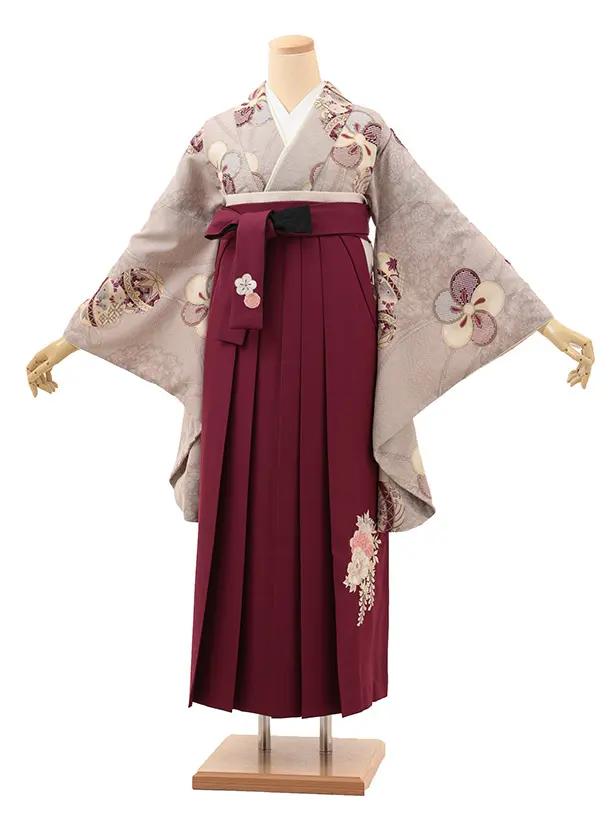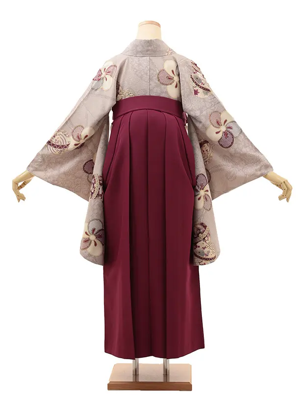 卒業袴 1812 九重 まりとねじり梅(グレージュ)×藤牡丹刺繍(エンジ)
