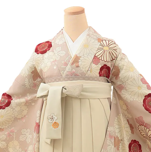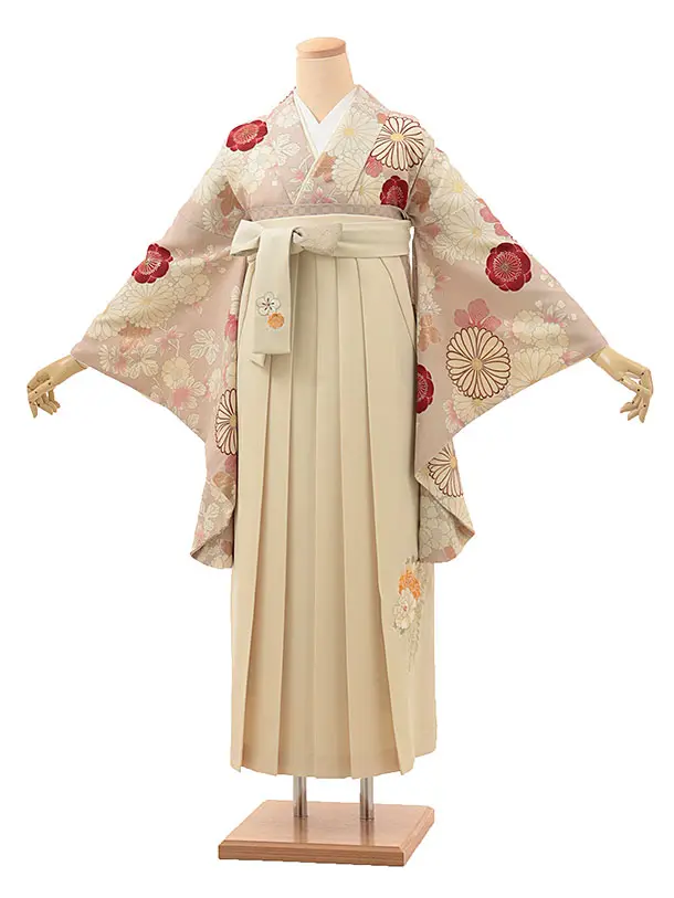 卒業式袴レンタル 1815 九重 白菊(ピンク)×藤牡丹刺繍(オフ)