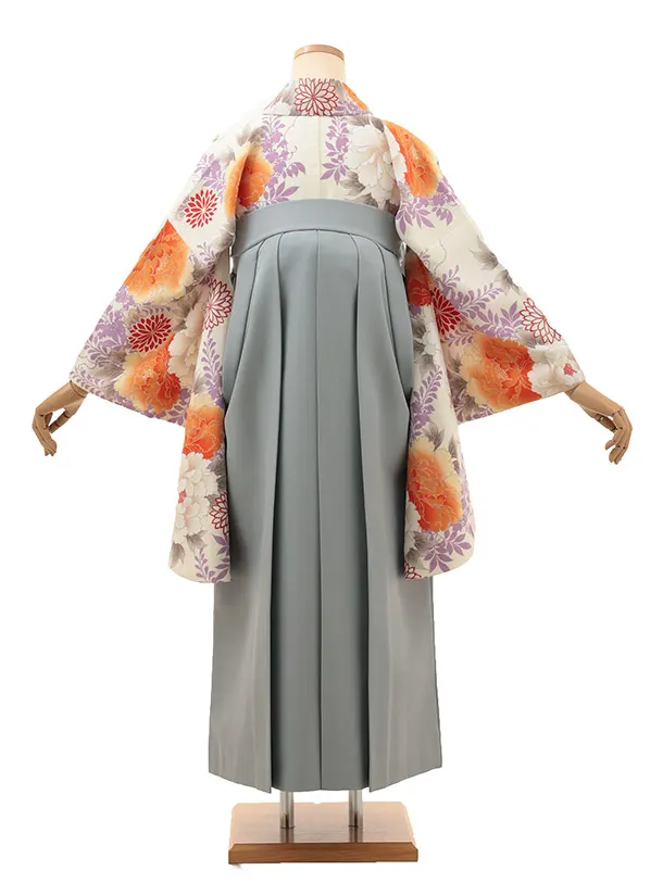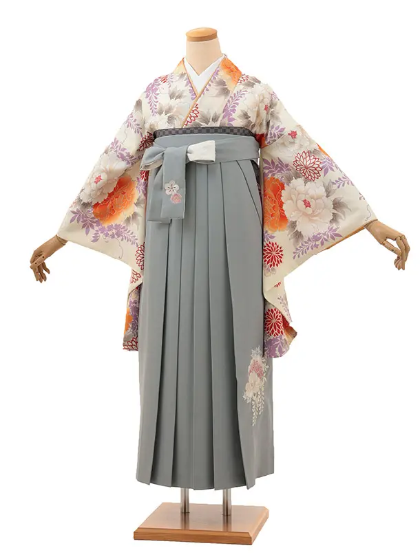 卒業式袴レンタル 1820 九重 藤と牡丹(クリーム)×藤牡丹刺繍(グレー)