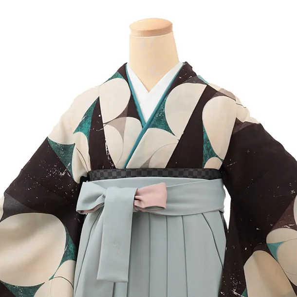 卒業袴1821モダンアンテナ ダークグレー×切り返し(グレー×ピンク)