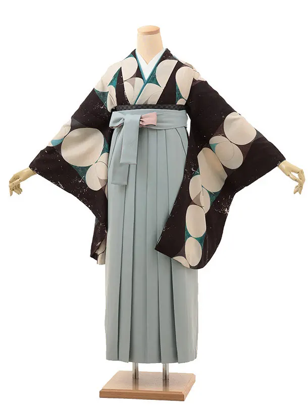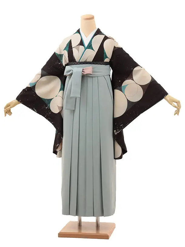 卒業袴1822モダンアンテナ ダークグレー×切り返し(グレー×ピンク)