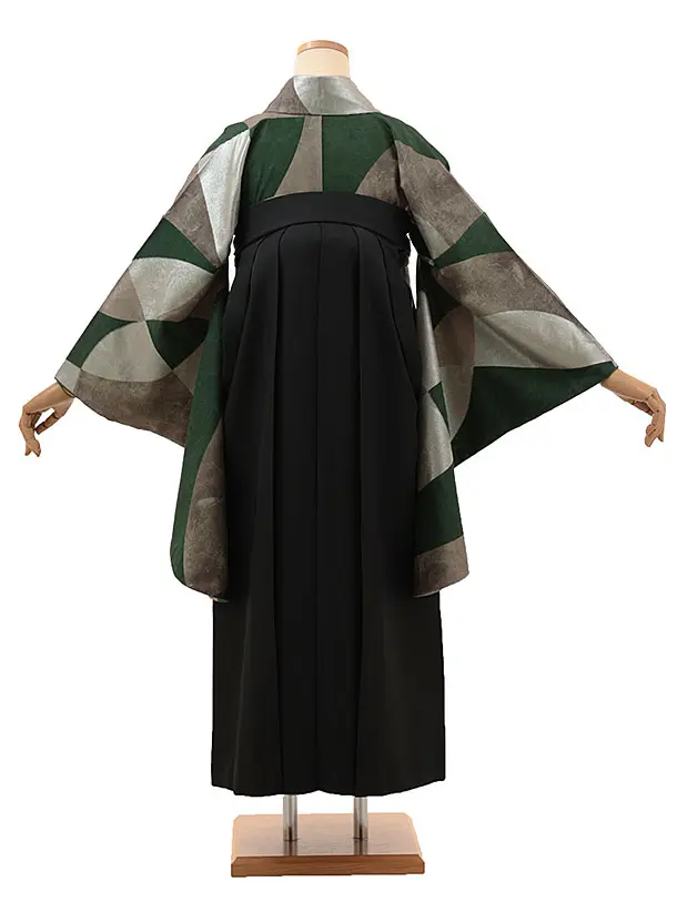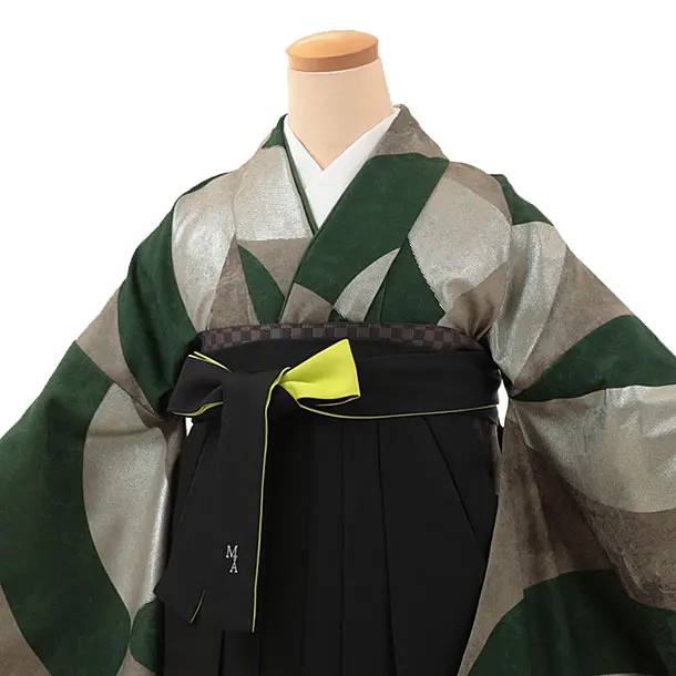 卒業式袴1828モダンアンテナ AとBリング(緑)×切り返し(黒×黄)