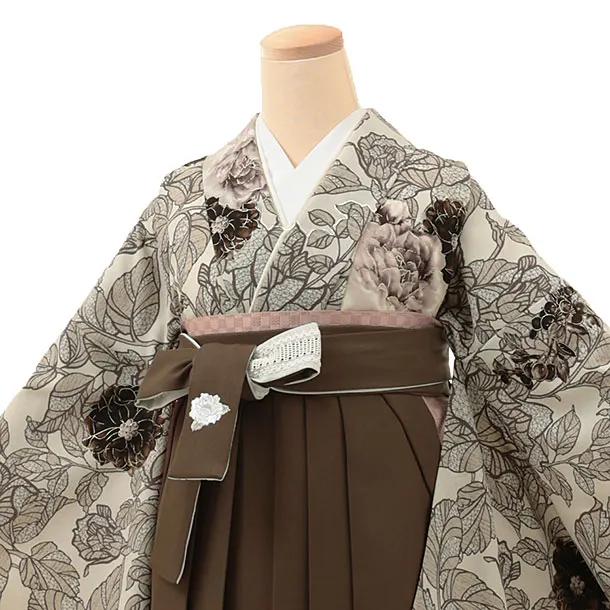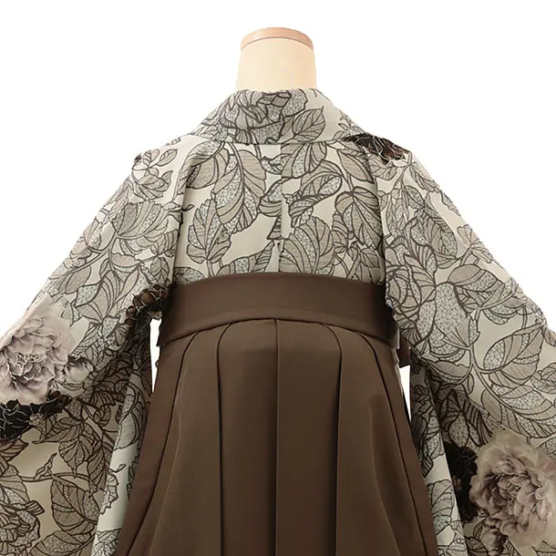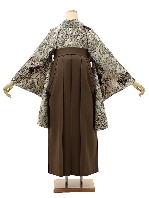 卒業式袴レンタル 1841 紅一点 野バラ(キャメル)×野バラ刺繍(ブラウン)