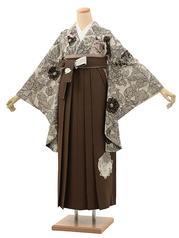 卒業式袴レンタル 1842 紅一点 野バラ(キャメル)×野バラ刺繍(ブラウン)
