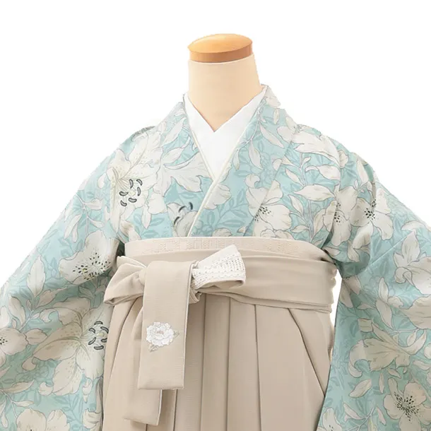 卒業袴 1843 紅一点 ゆり(スモーキーブルー)×野バラ刺繍(ベージュ)