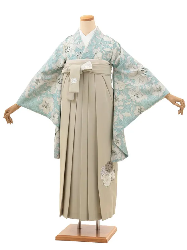 卒業袴 1844 紅一点 ゆり(スモーキーブルー)×野バラ刺繍(ベージュ)