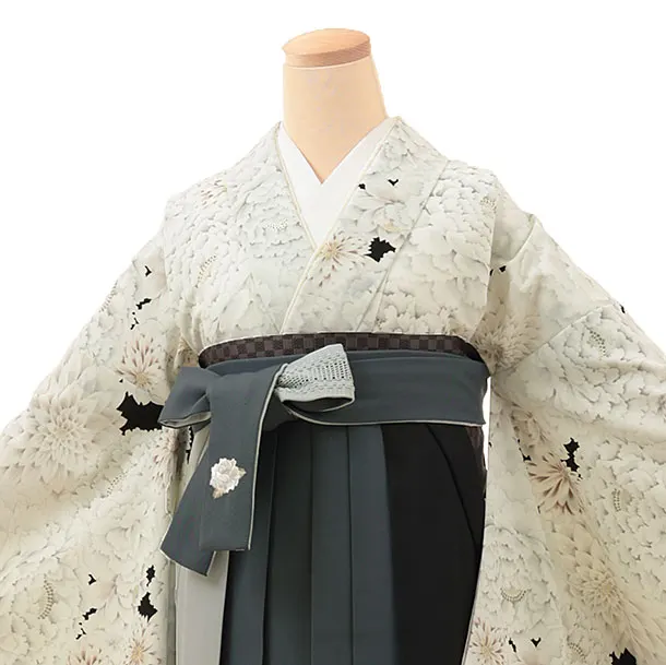 卒業式袴レンタル 1846 紅一点 白菊づくし×マルチカラー