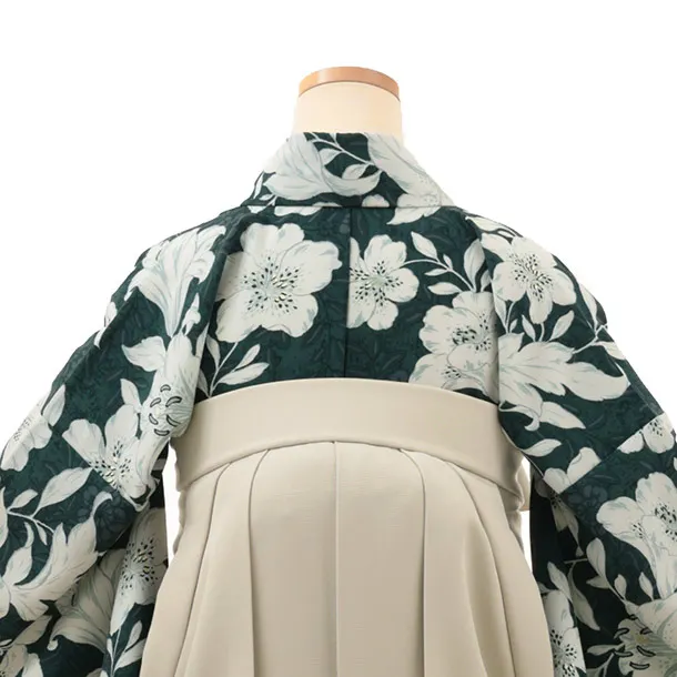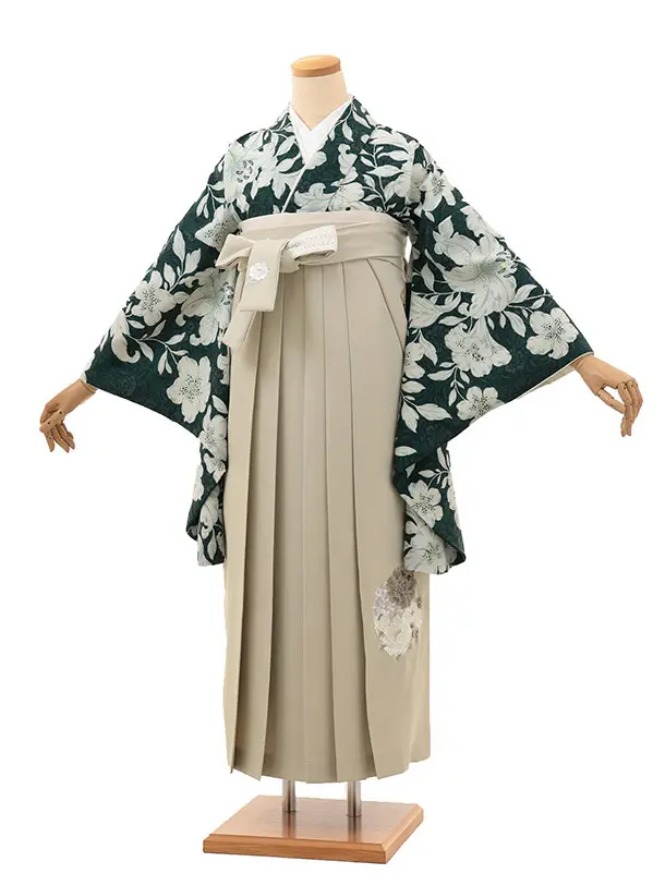 卒業式袴 1848 紅一点 ゆり(グリーン)×野バラ刺繍(ベージュ)