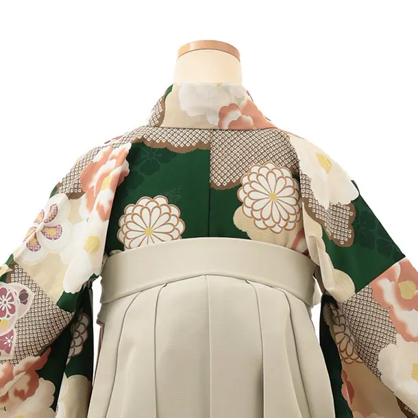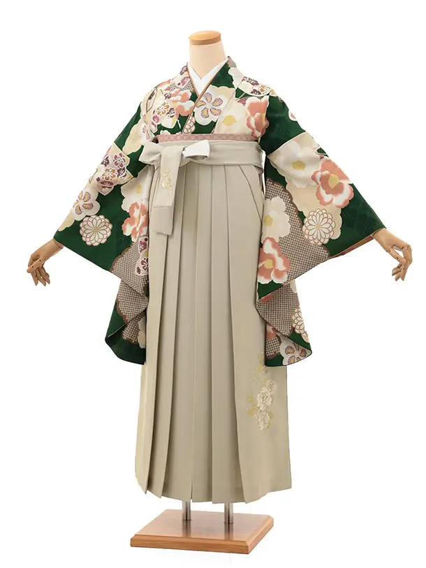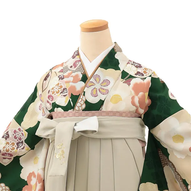 卒業式袴レンタル1850 Kansai グリーン椿橘xベージュ
