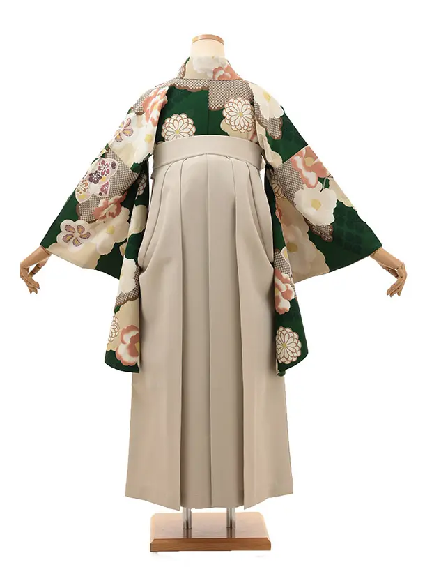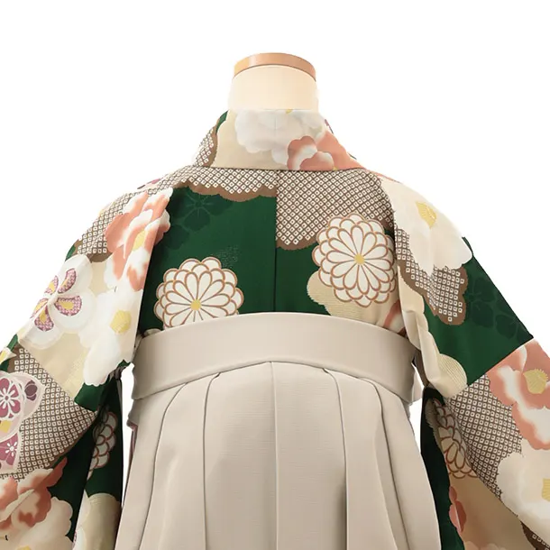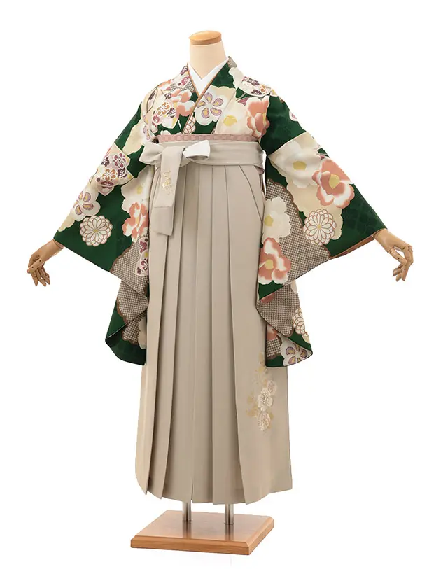卒業式袴レンタル1851 Kansai グリーン椿橘xベージュ