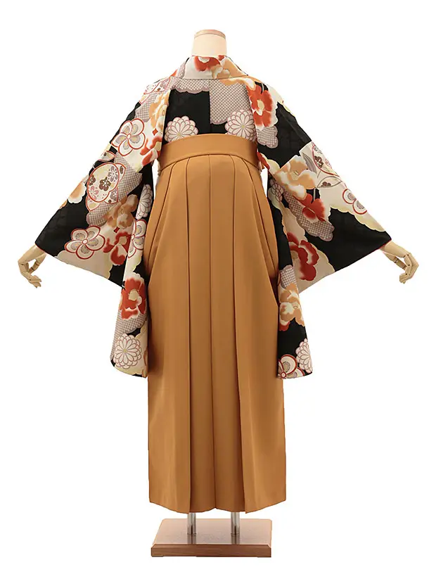 卒業式袴レンタル1852 Kansai 黒椿橘x山吹色