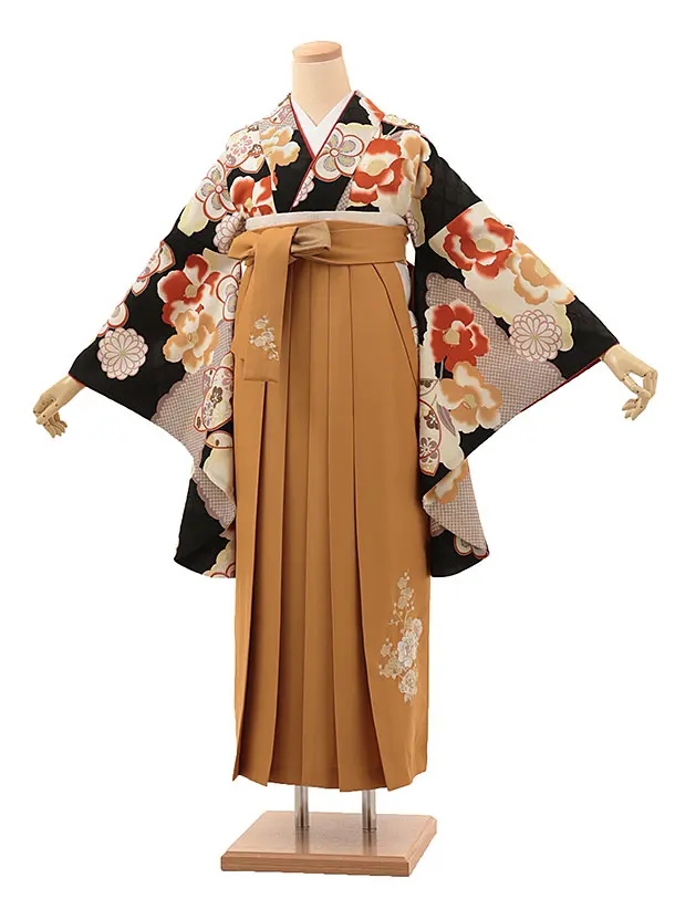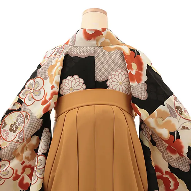 卒業式袴レンタル1853 Kansai 黒椿橘x山吹色