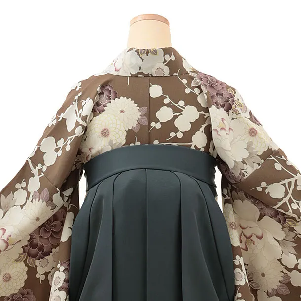 卒業式袴レンタル1858 Kansai ブラウン梅花xブルーグレー