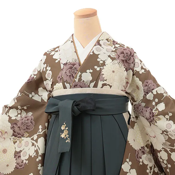卒業式袴レンタル1860 Kansai ブラウン梅花xブルーグレー