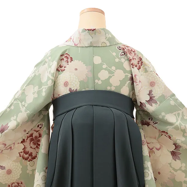卒業式袴レンタル1864 Kansai ペールグリーン梅花xブルーグレー