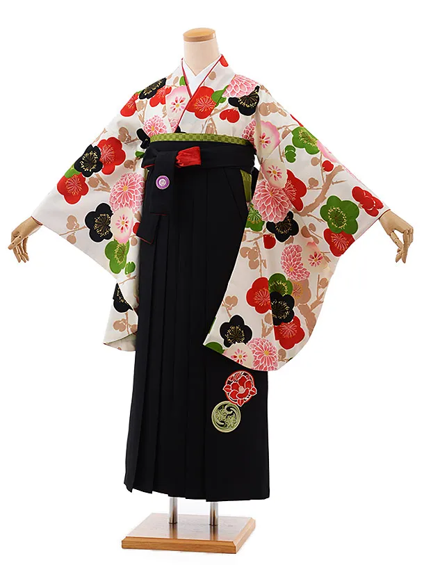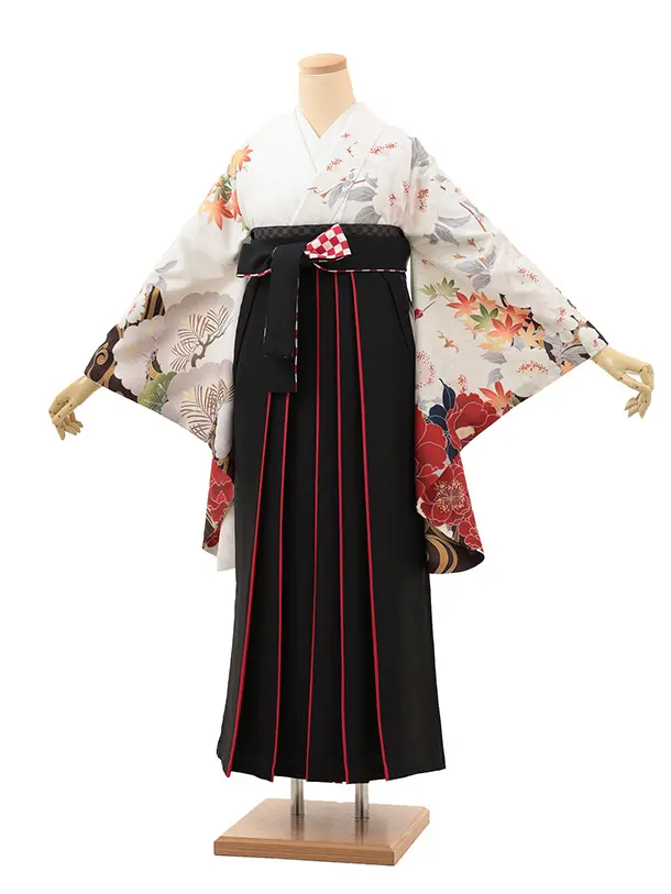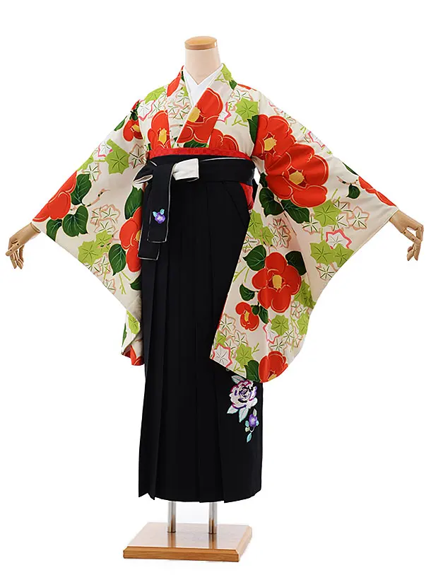 卒業式袴レンタル1870 白八重桜椿×黒赤