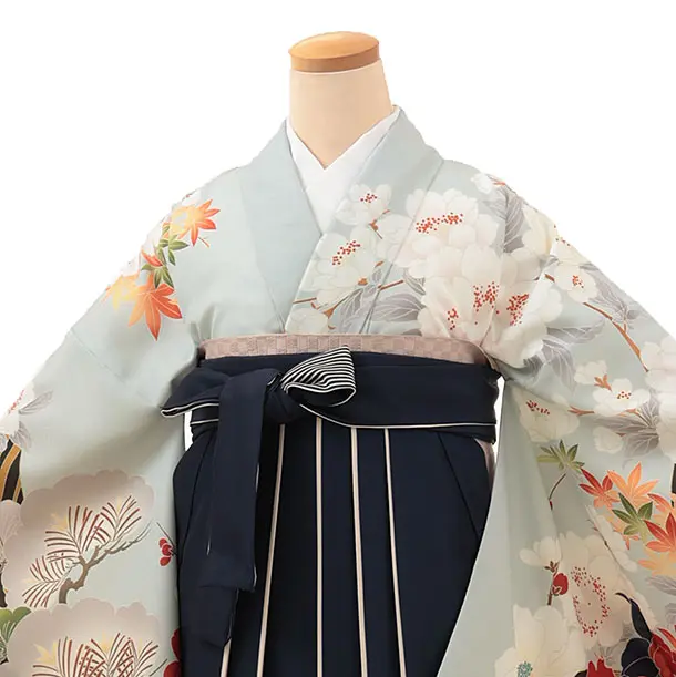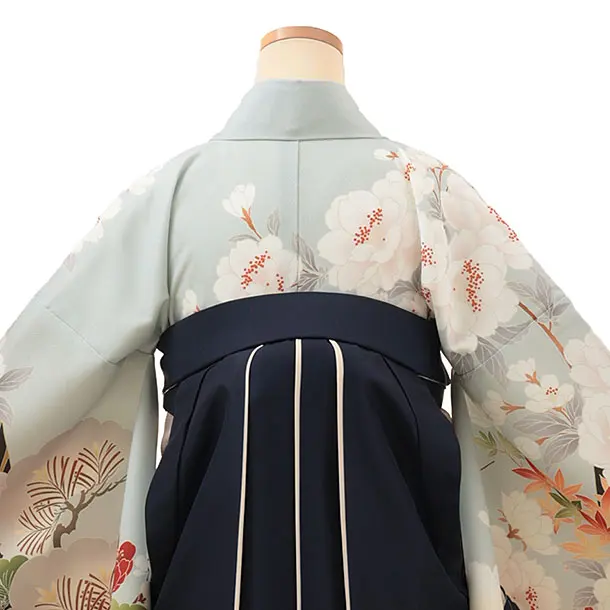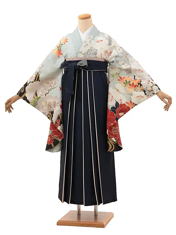 卒業式袴レンタル1872 グレー八重桜椿×紺アイボリー