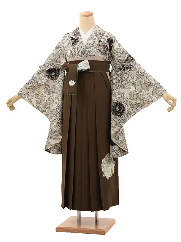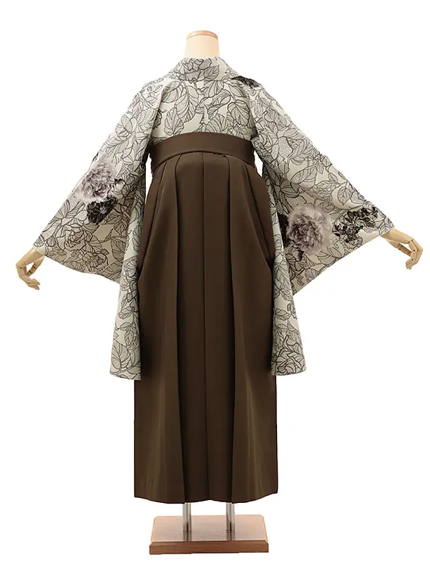 卒業式袴レンタル1875 紅一点グレージュ花×ブラウン
