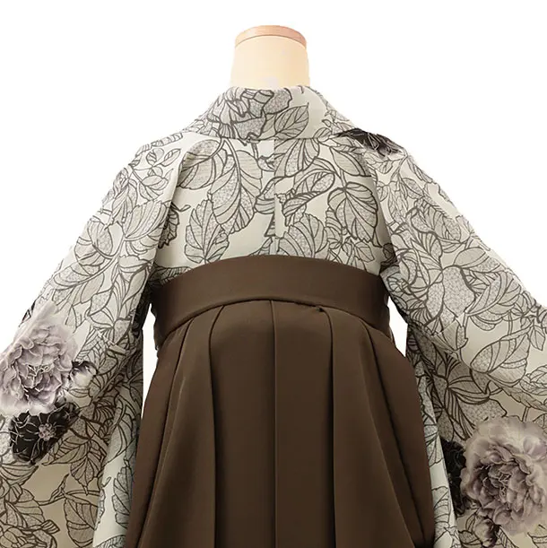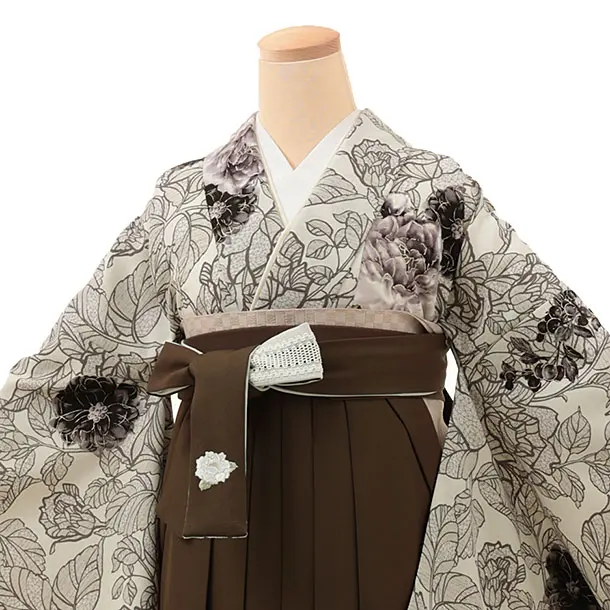 卒業式袴レンタル1876 紅一点グレージュ花×ブラウン