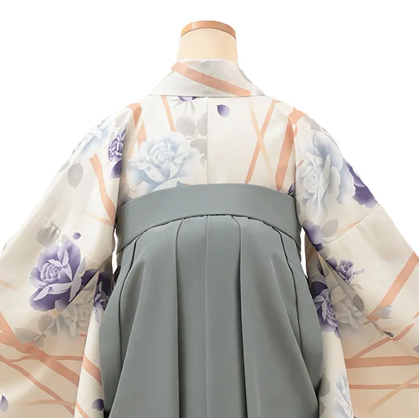 卒業式袴レンタル1883 クリーム地バラ×グレー