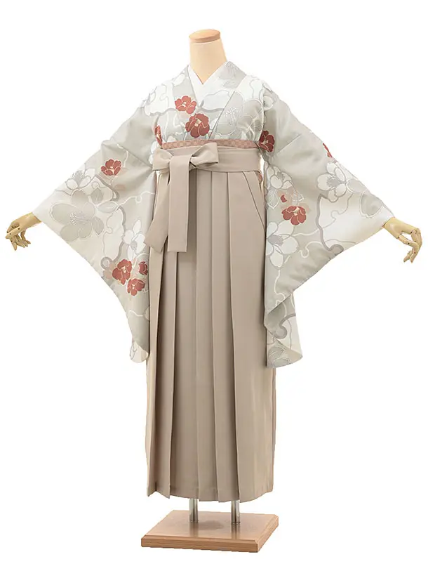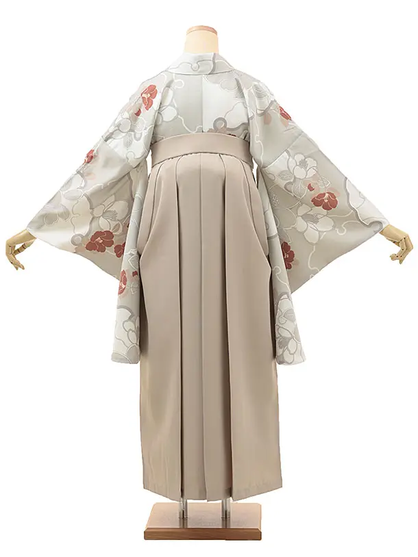 卒業式袴レンタル1885 グレー地 椿×ピンクベージュ