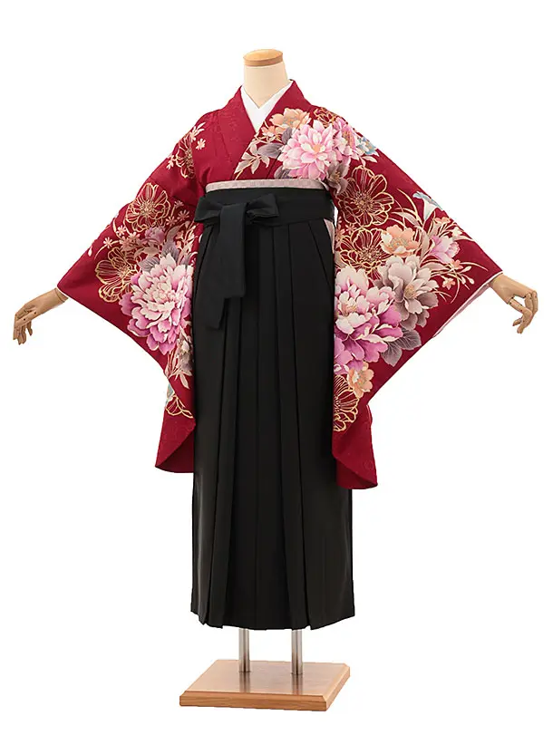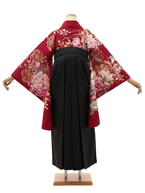 卒業式袴レンタル1906 ワイン牡丹×黒