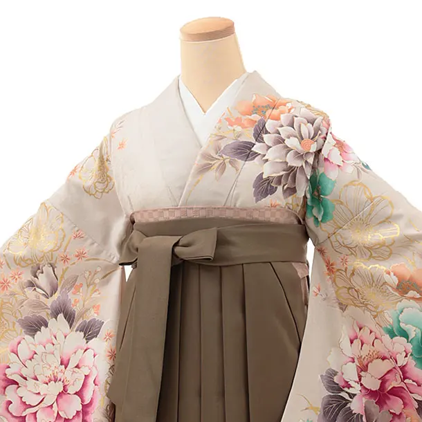 卒業式袴レンタル1908 ベージュ牡丹×ブラウン