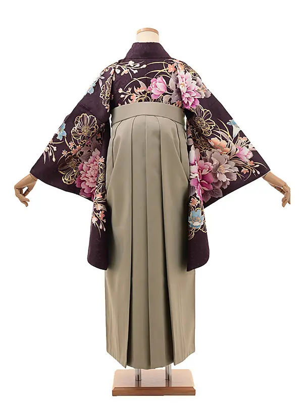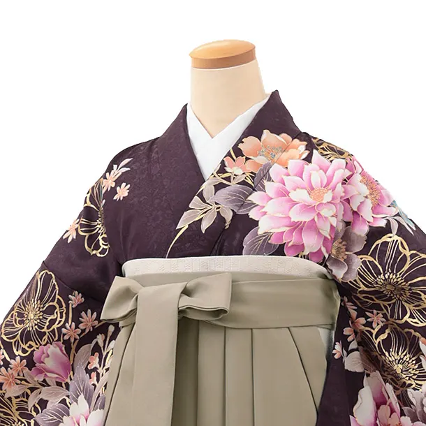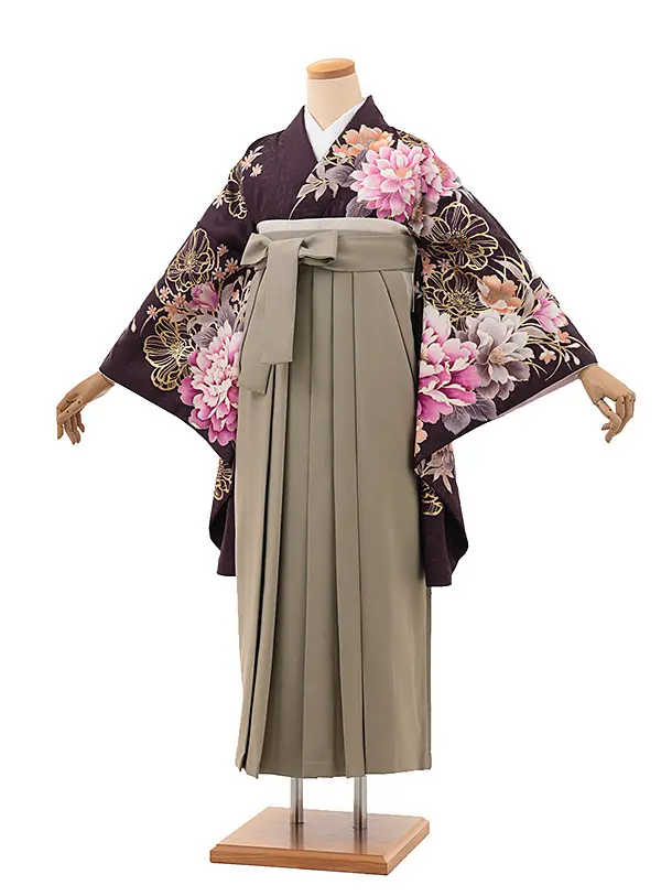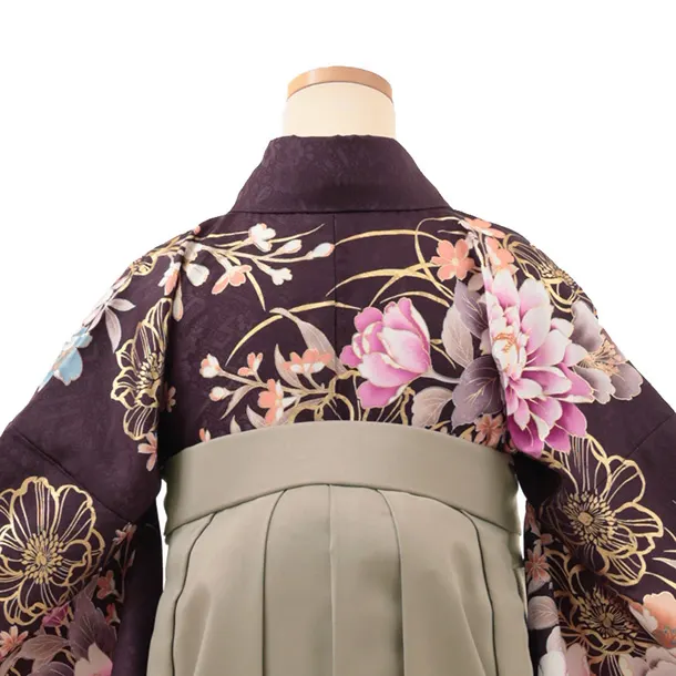 卒業式袴レンタル1910 ブラウンパープル牡丹×ベージュ