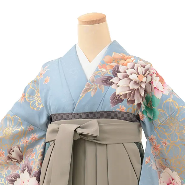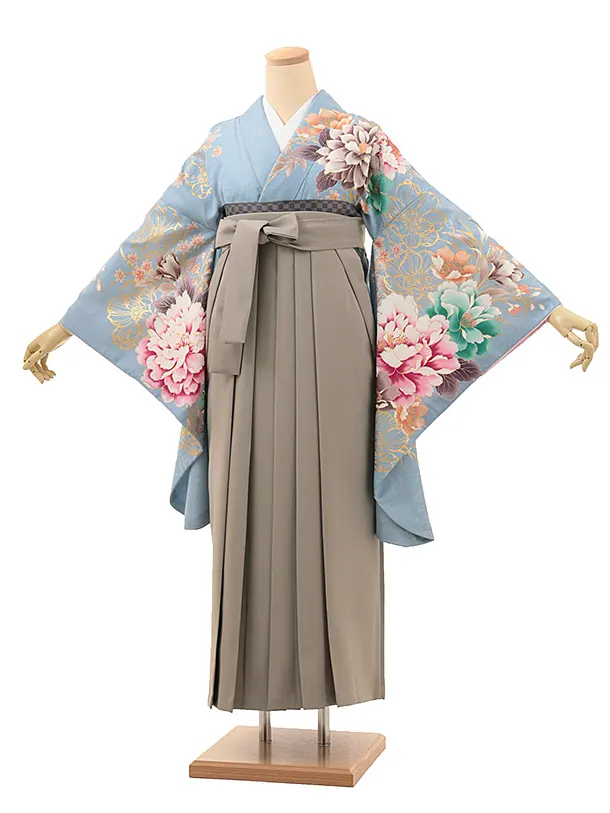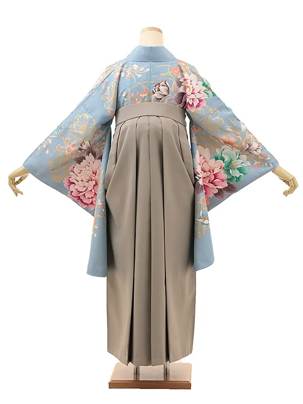 卒業式袴レンタル1911 ブルー牡丹×ベージュ