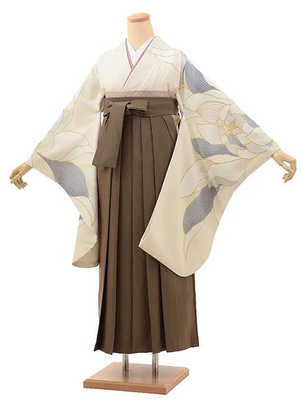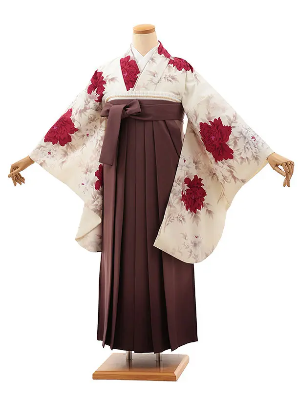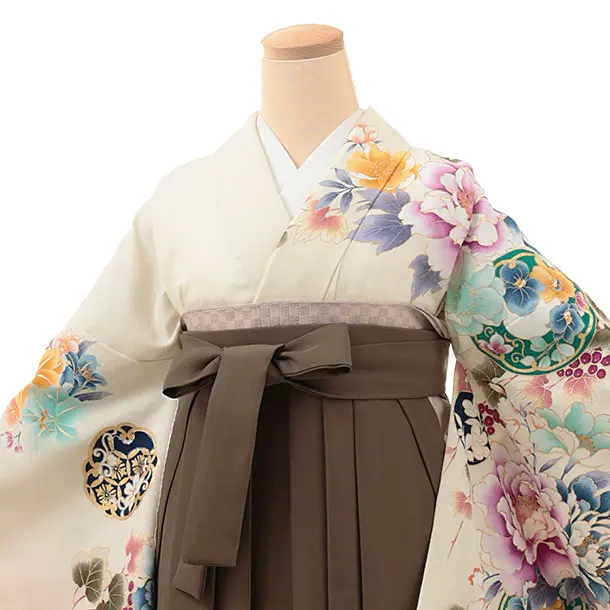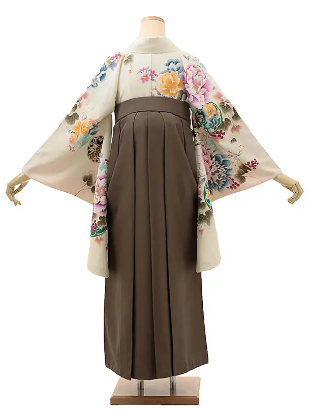 卒業式袴レンタル1920 クリーム花×ブラウン