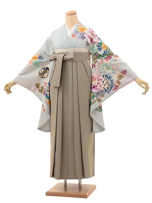 卒業式袴レンタル1923 ペールブルー花×ベージュ